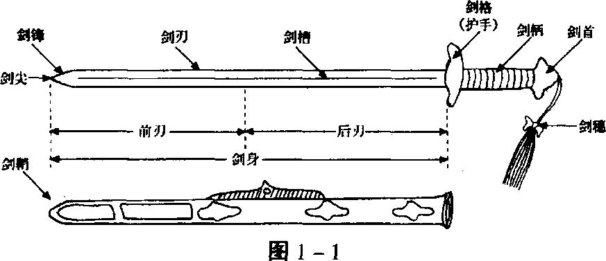 剑刃——可分为前刃和后刃,即剑身两侧锋利