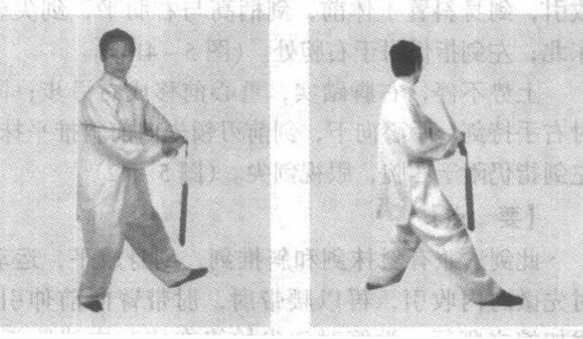① 错误:右手持剑无论臂内旋或里臂外旋,剑 身上下翻转,腕部生硬不灵活。