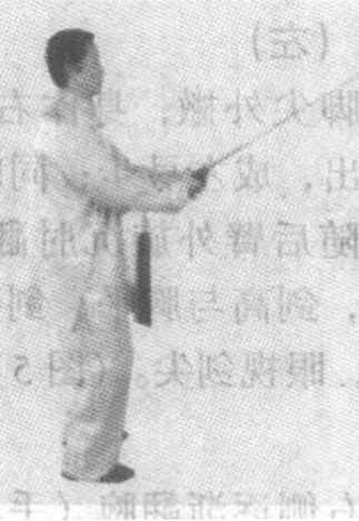 此剑法常以守势出现,平刺敌胸部或头部,一 般是快速击之,视情况而变化。