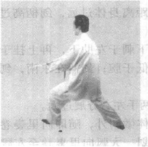 错误:右脚迈步重滞,外摆落地;右手削剑 (也称反手崩剑).臂直和紧握把柄,转动不灵活。