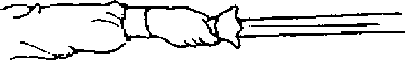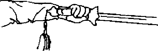 手心向前贴紧护手,食指附于剑柄后,拇指和 其余三指扣紧护手,剑后刃平面轻贴前臂,称为阳 手,用于起势◎(图-2)