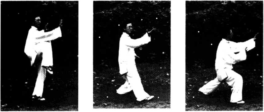 ② 左脚分出.左脚面微内扣,脚勺腰平。