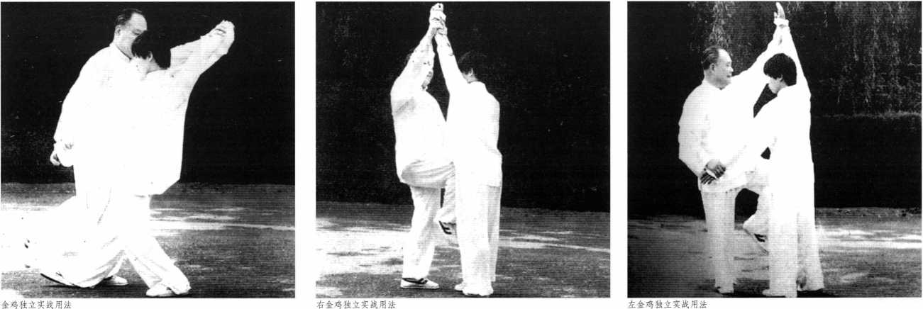 (口诀:金鸡独立占上风 提膝上打致命处 下伤二足难容情)