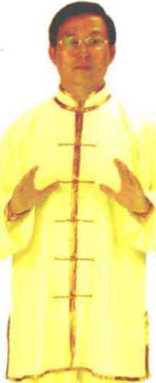 掌心相对,掌心相对,练习方法:双臂屈肘挑掌,向内划弧收于胸前, ;尖向上,眼向前平视。
