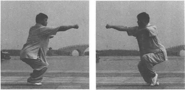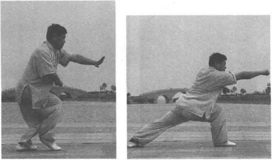 2.拳、掌转动要有篷出的劲,右冲拳劲力,力达拳面.