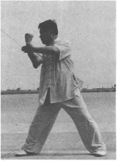 4 .右脚落步与右臂向外格击要同时进行。