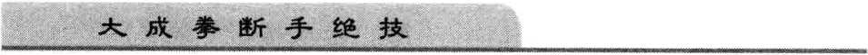 此示即钻拳也,然与形大成拳钻拳根本不同,盖二者力之作 用点不同,形大成拳之钻拳,其力作用于对方心窝之下颌软点; 大成拳之钻拳其力作用于对方心窝之软点且所发之拳之鸡心指 拳,并带旋力,故较形大成拳为厉害。实与西洋拳之闷捶颇相近 似也。此种打法,轻则能使对方休克,重则能使对方致命。学者 宜慎用之。