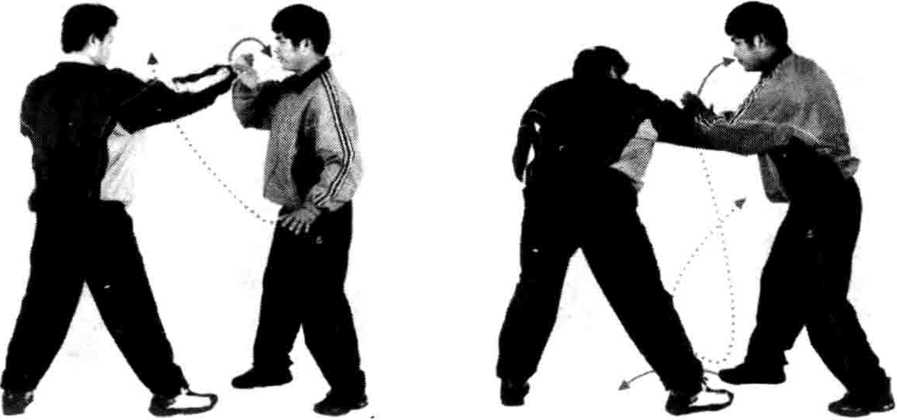 要 点:我拨按和右臂击脸要协调;我扣按和崩拳要连贯