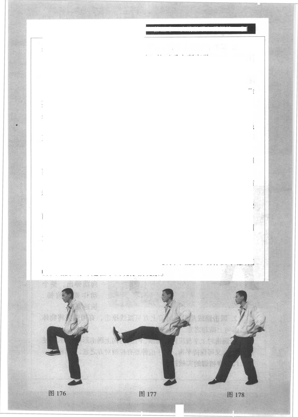 1. 敌我双方对峙。2. 我前脚向前进半步,右手向 前伸出,佯攻对手上部,同时后脚擦 地发力踢击其前腿胫骨(图175)。【练习要点】1.前手虚晃要真实,使对手产 生错误反应,后脚踢击要与前手虚第五章实战散手入门训练 91第五章实战散手入门训练 91晃同时完成。第五章实战散手入门训练 91第五章实战散手入门训练 912. 双眼不要向下看踢击目标,使对手有所察觉。