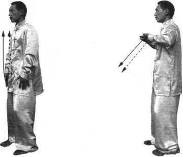 要点:身体自然站立,精神集中,提掌缓匀, 与呼吸一致,提掌时以鼻吸气。