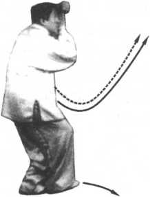 至右肩窝处,掌指向上,与肩相平,左臂屈肘靠左肋。