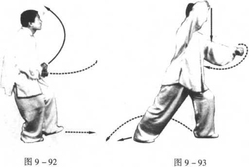 (2)动作与前头趟闸势4中践步射球势(2)的解释相同(图 9-93)0