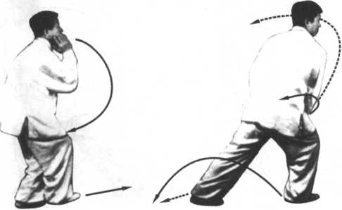 (1)接上式,两脚随身上起和上体微向右转的同时,右脚提 起向前垫在左脚的下方落地做主,右腿屈膝下蹲束身;左脚提起 前移至右脚前(注意:起前脚,急垫后脚,后脚撑前脚),成右单重 步;同时,两拳随身上起右转,右拳上起收回洞中,左拳随左臂外 旋,顺弧翻转下落收至右拳下方,变为左下右上,两拳心向上相 重叠,两臂屈肘分别靠在两肋;头微抬,两眼平视前方(图9- 92) o