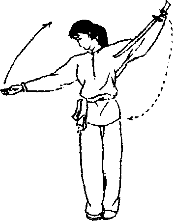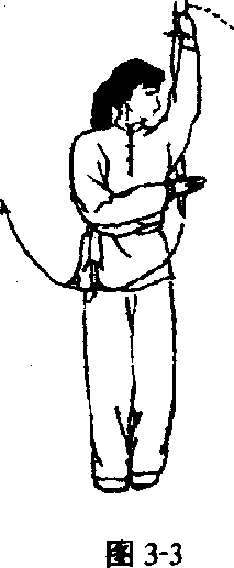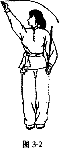 右手从右侧向右、向上直臂弧形绕行,掌心向左。目视右 掌。(图3?2)
