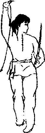 右手从左胸向下、向右弧形绕行;同时左手握刀从上向 左、向下弧形绕行。目视右手。(图3?4)