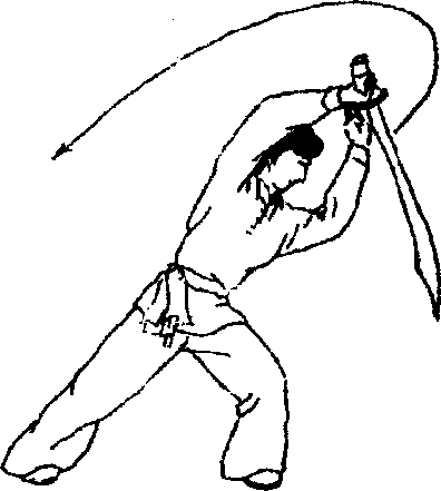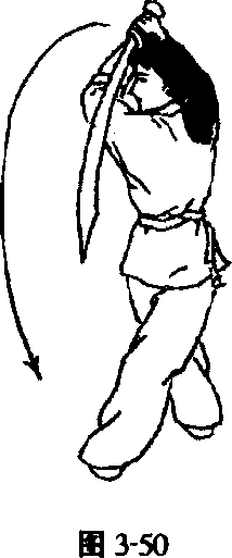 向左侧下按,刀刃朝下,刀尖朝身后。目视刀身。(图3-51)