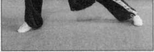 (3) 身体左后转,左脚尖外展, 右脚向左脚内侧上步,两脚跟并 拢,两膝外展屈膝全蹲,上体前