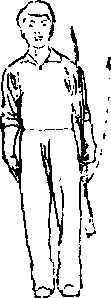 两脚并立费左手抱刀垂于身称左瓣.右臂自然耋于身体 右侧;目视前方,(图1)