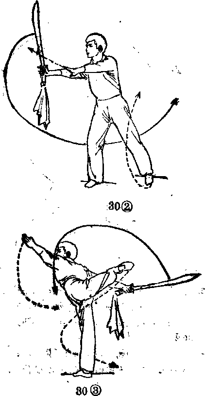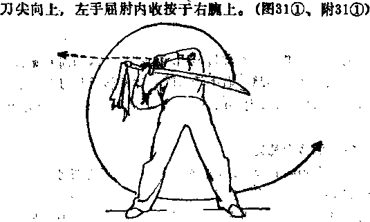 ①左雎右腿前向若翅时询%屈滕半%上体前俯, 右手持刀臂外威向上曲左dg整爵星身体左角刀刃向左.①左雎右腿前向若翅时询%屈滕半%上体前俯, 右手持刀臂外威向上曲左dg整爵星身体左角刀刃向左.