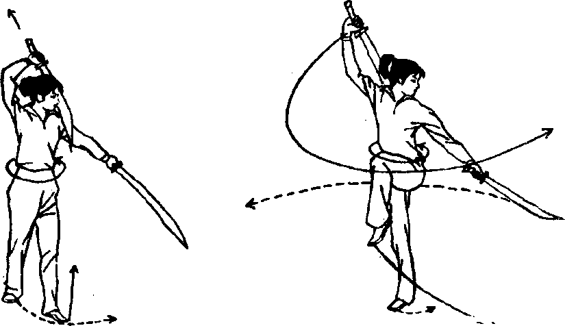 图E25②图E25②后转体360度时要提纵、提气。斩刀力点在刀刃、腕部用力。