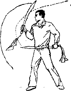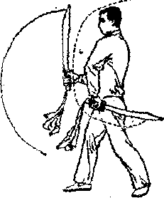上3左臂屈肘下落,左刀横于 图B-31③