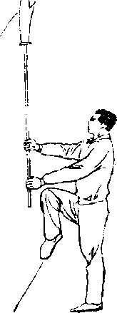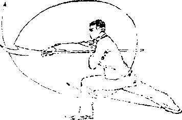 图D—18①图D—18①向上、向后绕,再使刀刃向前、 向上挑起,刀刃朝前,刀尖朝 上,刀把上下垂直,立于体 前J左手向下滑把,手臂伸直,