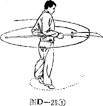 图 D—29@图 D—29@再向左后上方斩击,刀刃朝左, 、