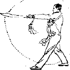 步左刀以刀刃向下经右腿侧后抡抡至身后左臂内旋于手心朝里,刀背贴靠右肩后仰刀尖朝后上方3右臂外旋直臂上举刀刃向上抡起刀刃朝上刀尖向后上方眼视前方(图—2973
