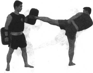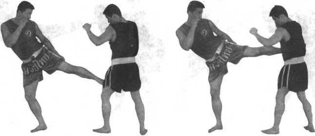 迅速伸膝发力并借助转腰的力量加大打击力度。上体不要倾斜过大弹踢的瞬间同侧手置于大腿外侧异侧手置于下颌处防守。