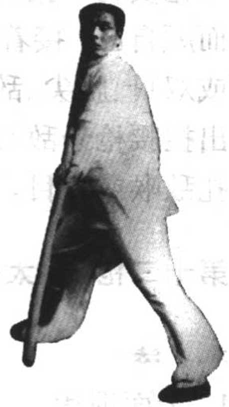枪从内向外一缠向内拿, 接着上左脚,再上右脚并