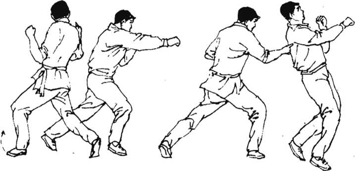 点打要领在技击对抗中(图131),对手施老虎出洞之势猛然向我猛扑过来,我立即缩身侧闪躲开(图132),而使