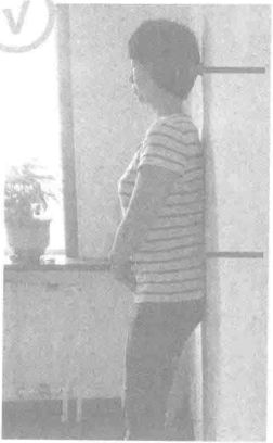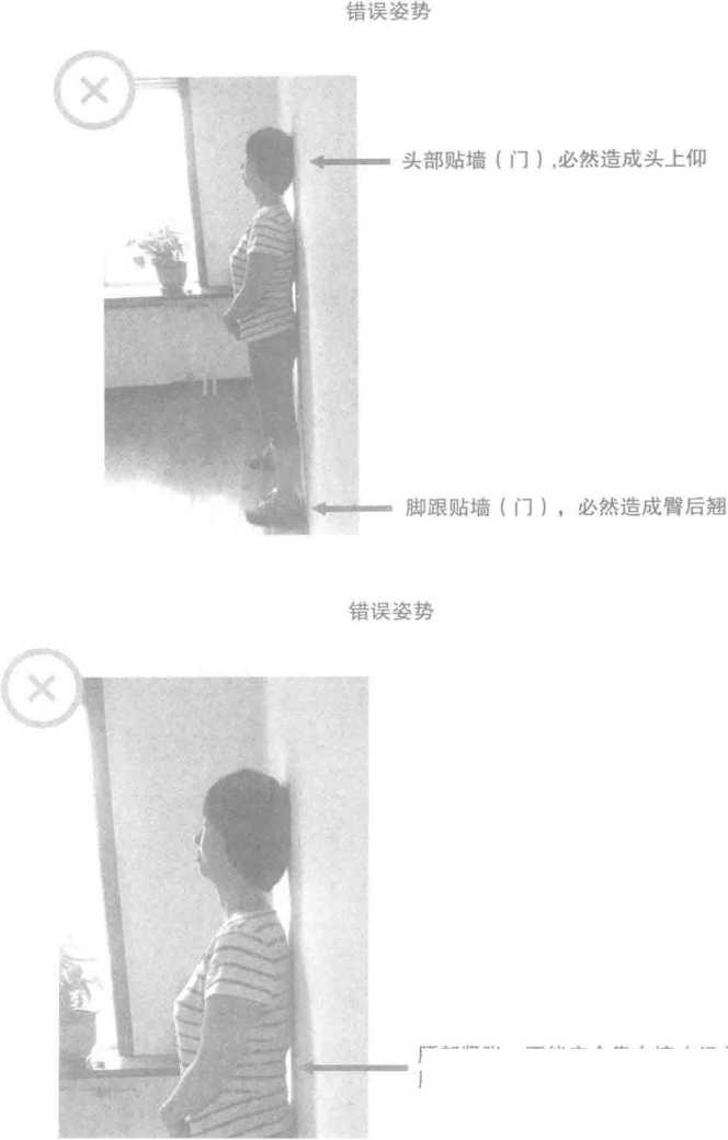 头部不必贴住墙(门)头部不必贴住墙(门)腰部完全靠在墙(门)上不留缝隙完全放松不用一点力量