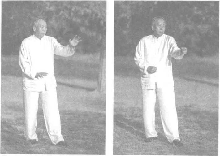炮拳属火打的时候一定要把这气提起来气一定要开满两肋呼的时候一定要把它扔出去。明白了吧?不要拿手去捅去,拿这(中丹田)往外扔°手上不要用力。炮拳就真跟炮似的一下就扔出去了劲特别猛就像炮一样但不是在胳膊上用力在腿上在胯上丹田带动的。