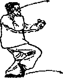 用途:当对方用左正踹腿蹬我胸部时,我快速上步,用 左爪捋拍对方的踹击腿的踝关节,向下或向外捋拨,同时 再用右爪向前抓拍对方的眼睛及面部。