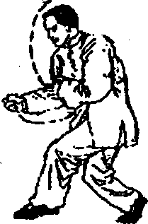 ’ 1.右拳由劈砸动作向前方直臂击打,拳眼朝上。同时,左掌变拳回收至左腰间,拳眼朝上,目视前方。(见图 3—177)2.右臂由前经右头侧向后屈肘划立弧向前挑打,左腿 向前跟进半步,成为左跟步。同时,拳心朝上,左拳由左腰 间屈肘变掌横于胸前,拳心朝上,目视左拳。(见图3- 178)图 3—178要点:打直拳时要短促有力,跟步时要重心平稳,左脚 掌着地,脚跟抬起。挑打动作应与跟步动作同时完成。挑 打要有脆劲。用途:当我用右直拳击打对方面部,对方向右闪身并 用劈砸拳砸我头部时,我随即向左方斜身上步跟进。同 时,用左挑拳由下向上钩打其腹部。