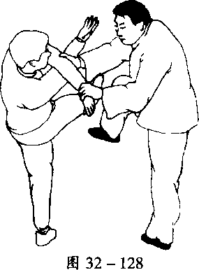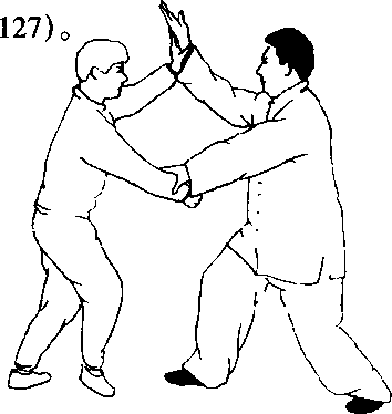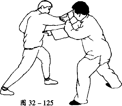 掌。甲左脚上步於乙右脚外侧(图32-126、图32-