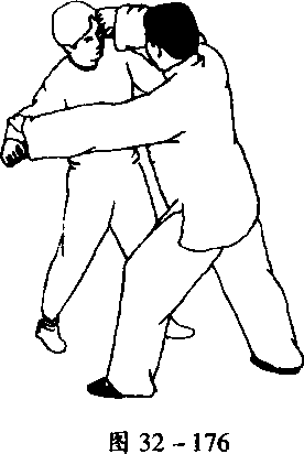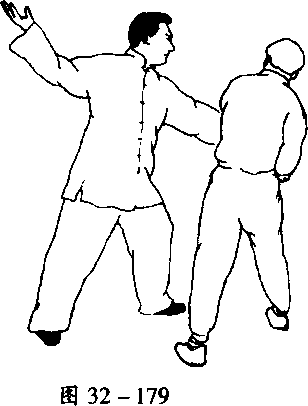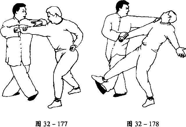 势,甲左掌向斜下方横切乙方喉咙部位(图32 - 178)。