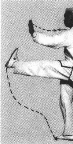 要点说明:①“左右起脚”动作是直摆性的腿法,做 法应注意:起脚要缓起慢落,敛臀收胯,支撑脚扎实站