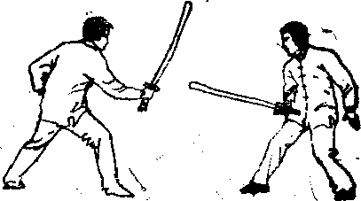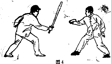 步势同上右手持兵屈时置于膜前肘护期使短兵前伸与腹平指向对方,左手自然置于身后或体恻,(图3),图3二-也岁息有利用左右横向来击的防守还击也便于直剌对方4摘举势步势同前右手持短兵臂自然前伸虎口向左,使短兵横平置?胸腹前,眼注视对方(图4)此势便于防劈头和左右横击动作利于防守还击其上部5头上举步势同上右手虎口靠护手盘,左手在右手下虎口挨右手小指侧双手持握短兵斜举于头右上方眼注视对方(图5)此势尤其便于防守中下方和左方的来击并且还击有力队背后第
