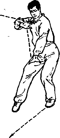 左脚向左斜后方退一步,重心移至左脚,右脚向左收回成