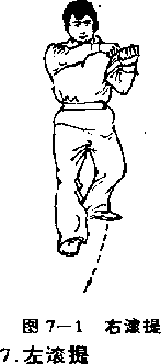 (左脚向前上半弟两拳翻腕向右厕方上提眼平视前方(图8—1)