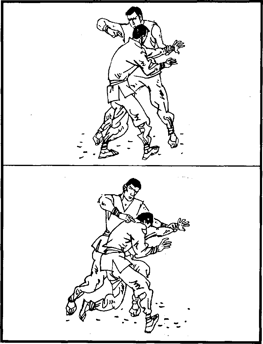 4 我左手不松右拳略向后收数寸化掌以掌底沉劲猛抵对方下颌部。这一收一放如推窗开户用九沉痂展捷,使对方上盘连招二击。人中穴受击头晕目眩并做直摭齿带我破。以上动作均需连绵不断、招招相续不可矜有幽宜