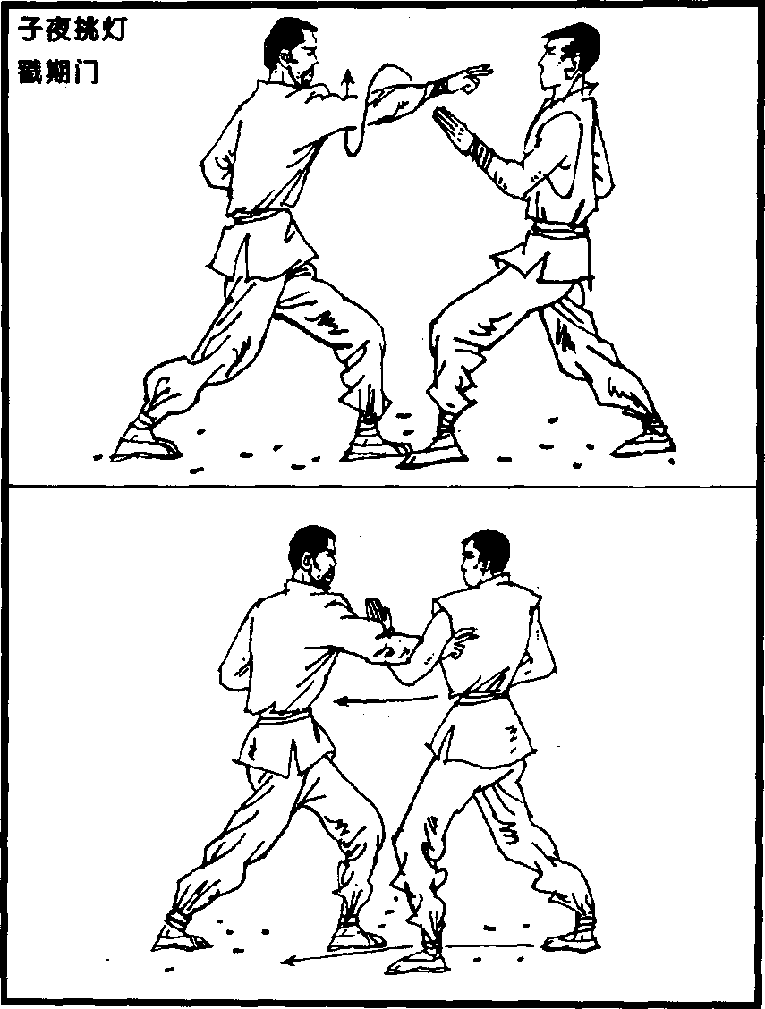 2 我出左穿手直插对方将对方左手反扣夹于胁下。