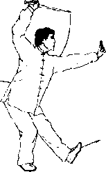 (5)左脚向左落步以脚跟着地直膝右脚不动屈膝