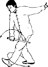 (2)右手剑划弧上挂变划圆过渡到后撩时要自然顺畅。