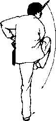 (5)左膝关节伸直脚尖右转加脚外侧着地不右脚落步膝关节弯曲脚尖与上体同向。