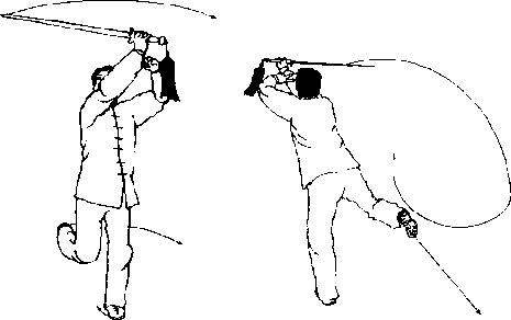 (3)扫剑时要快速、有力力达上剑刃。