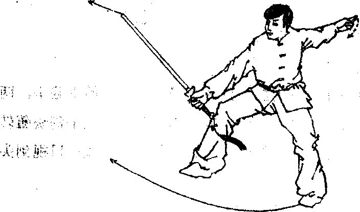 拐步;同时右手持剑内旋,剑由上经左后再向前下截击,两 剑刃向左、右方,剑尖下斜,力达剑刃前端;左手剑诀随转