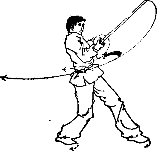 撤步反撩和摆步上截、 要快速、连员, 剑应在敌械之 下,顺势而霆,借力、制力。