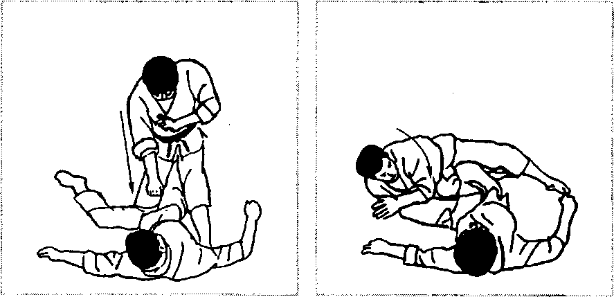 不慎倒地,应有意置一腿于对方裆内(图2-764)o